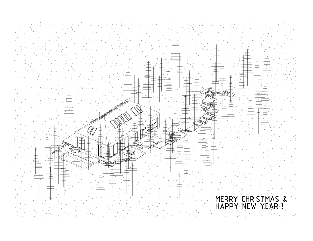 The house is oriented inside – on family, slow paced lifestyle – and outside – forest, preservation of landscape, living in harmony with nature, minimal environmental footprint. The design provides a spacious but compact space for four family members with natural ventilation, heating and cooling through inner gardens. The design adapts recycling and reusing of reclaimed materials and construction and demolition waste (CDW) to reduce the environmental impact. The possibility to use salvaged windows, doors and glazing systems is harmoniously implemented into minimal and ascetic design, both inside and outside, as well as into resilient architectural assembly. The house is located in the old pine forest that allows a little light to come through. The maximum amount of existing trees have been preserved. Dark building envelope secures light absorption and reduces heating through cold winter months. At the same time, the house is protected from the summer heat by the high pine tree forest. Vertical vegetable garden is located in the most exposed to the sun area.