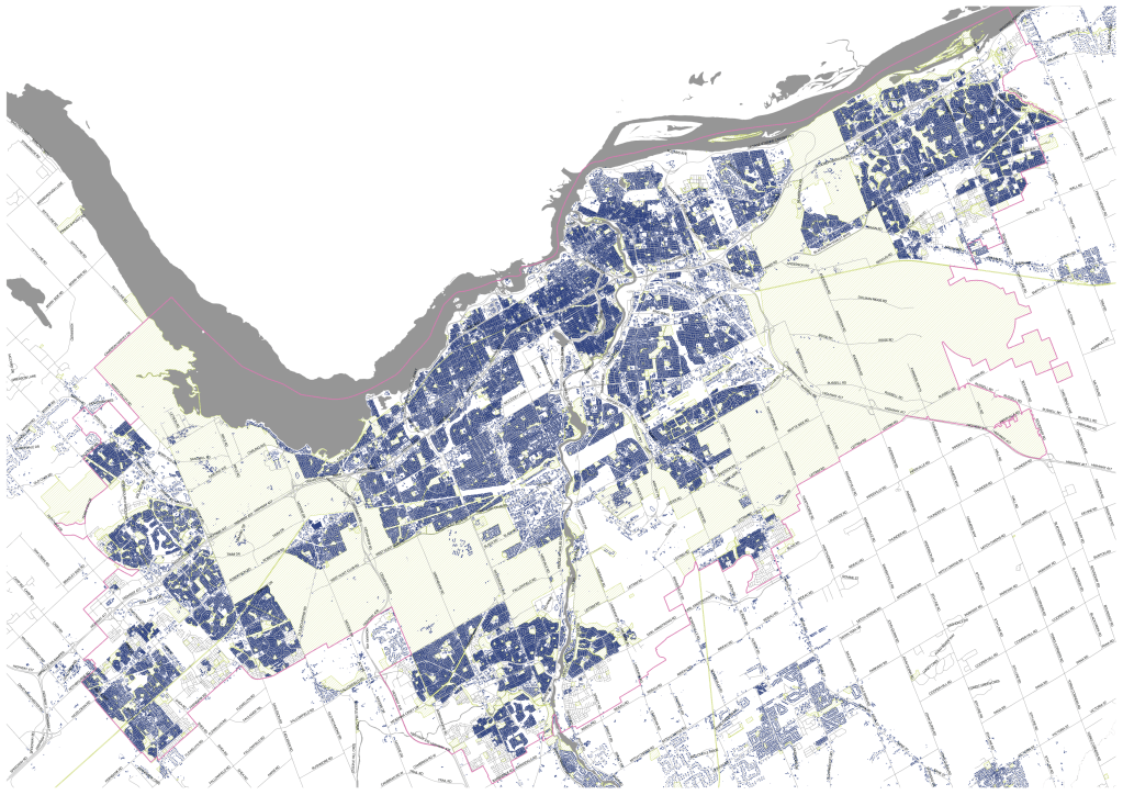 Ottawa’s urban boundary with all buildings footprints (as of June 2021).